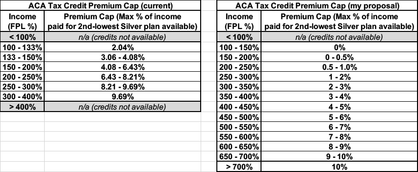 Here's how the formula for the ACA exchange tax credits works currently...and how I would propose restructuring it:
