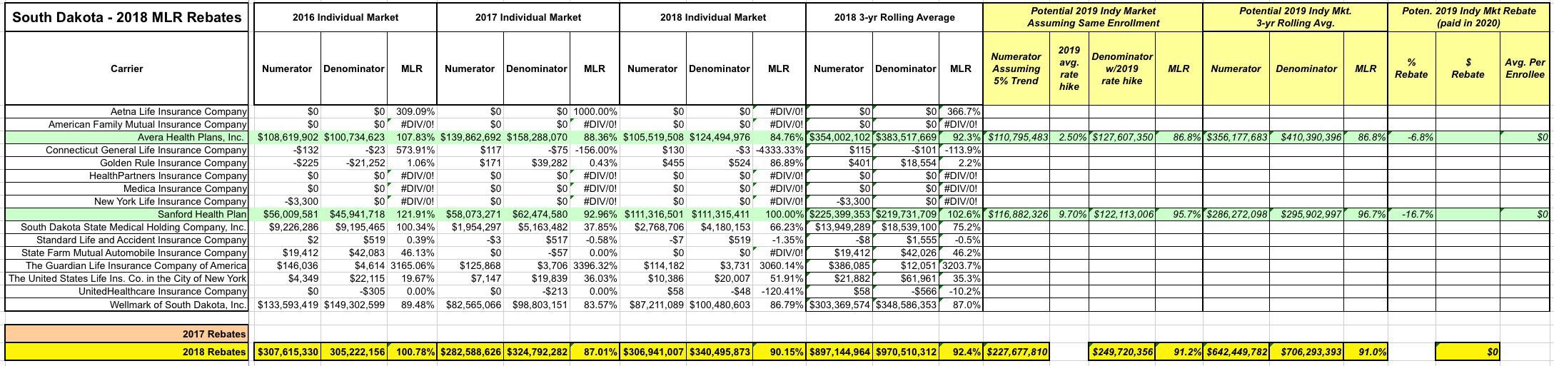 AGAIN: There's absolutely no guarantee that things will play out this way. It's possible that none of these carriers will make MLR payments next year, or only some of them will, or the amounts will be smaller. These 2019 projections are pure speculation on my part based on a number of big assumptions.