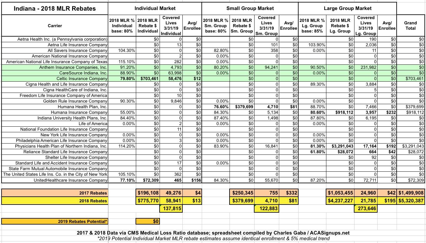 Exclusive!* Indiana: $5.3 million in 2018 MLR rebate payments