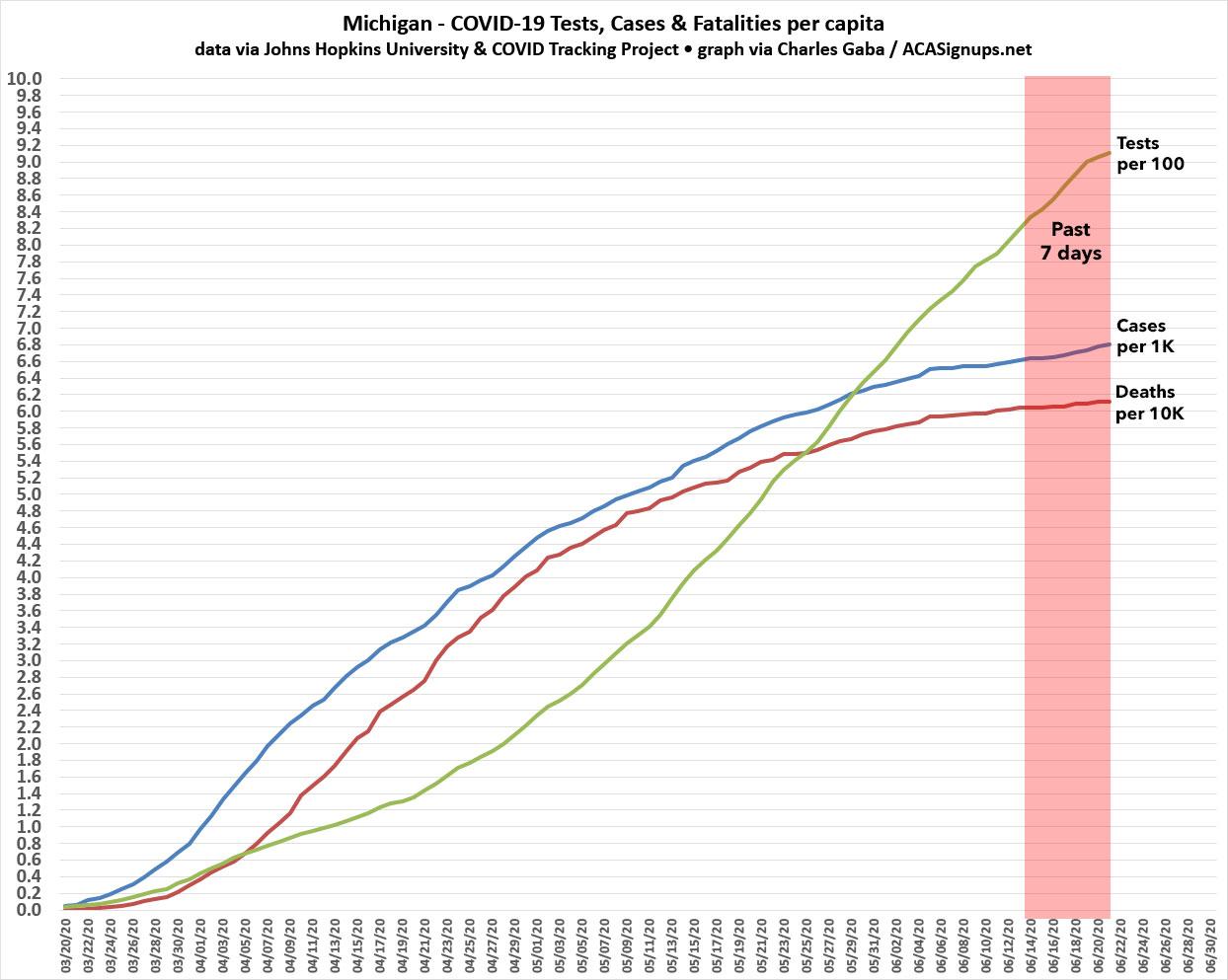 I'll conclude with one more chart: My home state of Michigan, which was also hit hard early on, is a great example of flattening the curve: