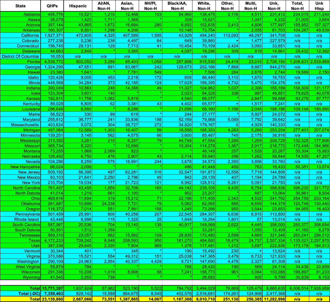 What is interesting, however, is that the Trump Regime is still including the racial/ethnic demographic data at all, which is a bit surprising given that they've been purging this type of so-called "woke" data from every other federal healthcare database. Huh. Glad to see it (for now, at least).