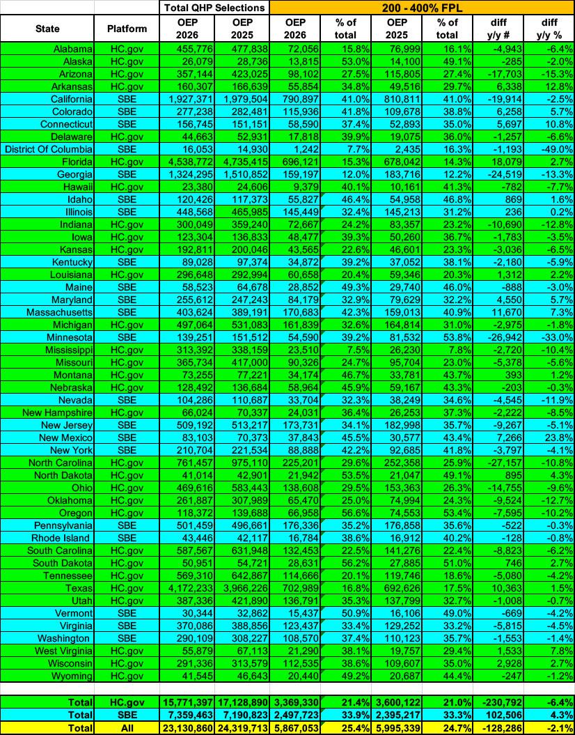- First, they were the least-impacted by the enhanced subsidies expiring (most of them still saw their premiums jump dramatically, just not as dramatically as those below 200% FPL or over 400% FPL)