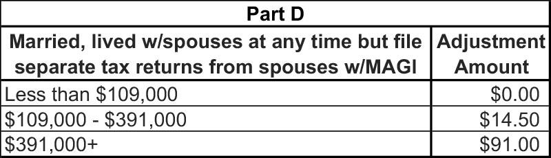 Premiums for high-income beneficiaries who are married and lived with their spouse at any time during the taxable year, but file a separate return, are as follows: