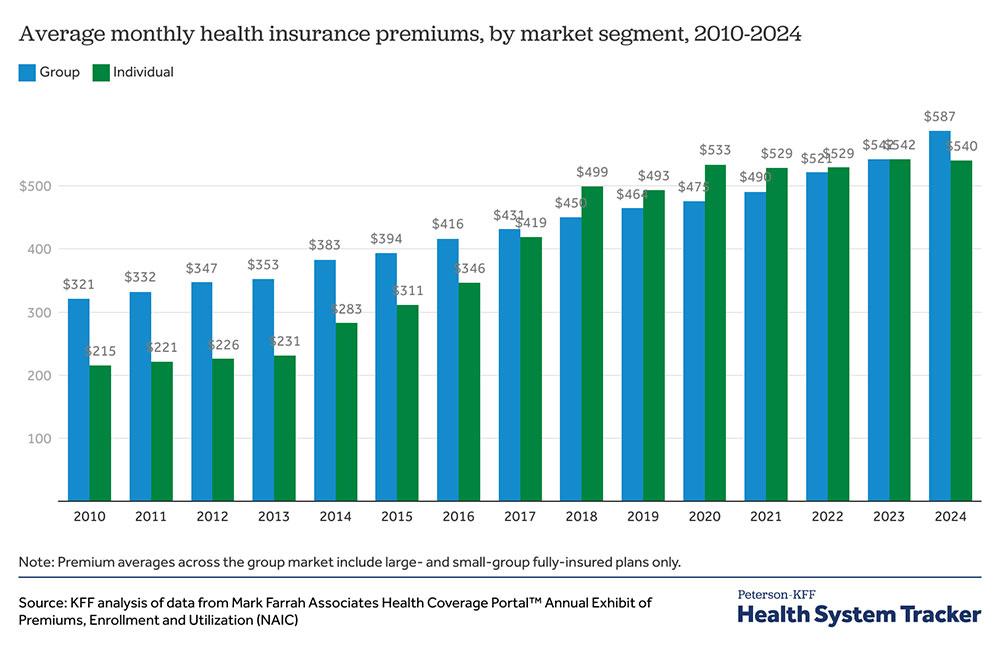 What's actually happened since ACA regulations were put into place in 2014 is that the regulations for individual market and group market coverage have mostly converged, which is why it shouldn't be surprising that lo & behold, full-price premiums for both are roughly the same on average these days.