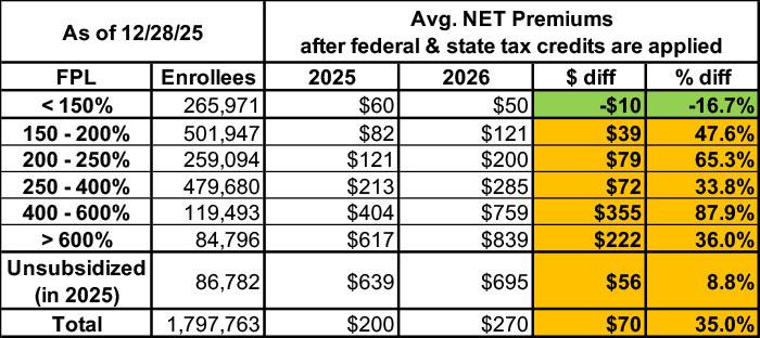 The ~266,000 enrollees who earn < 150% FPL are actually seeing a net reduction in their monthly premiums thanks to the state backfilling the lost federal tax credits.