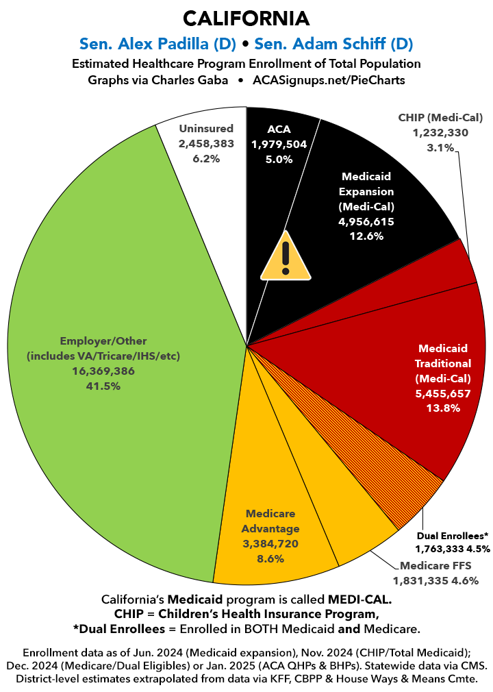 Over the past couple of months I've compiled a master spreadsheet breaking out enrollment in ACA plans (Qualified Health Plans & Basic Health Plans), Medicaid/CHIP coverage (both traditional & via ACA expansion) and Medicare (both Fee-for-Services & Advantage) at the Congressional District levels.