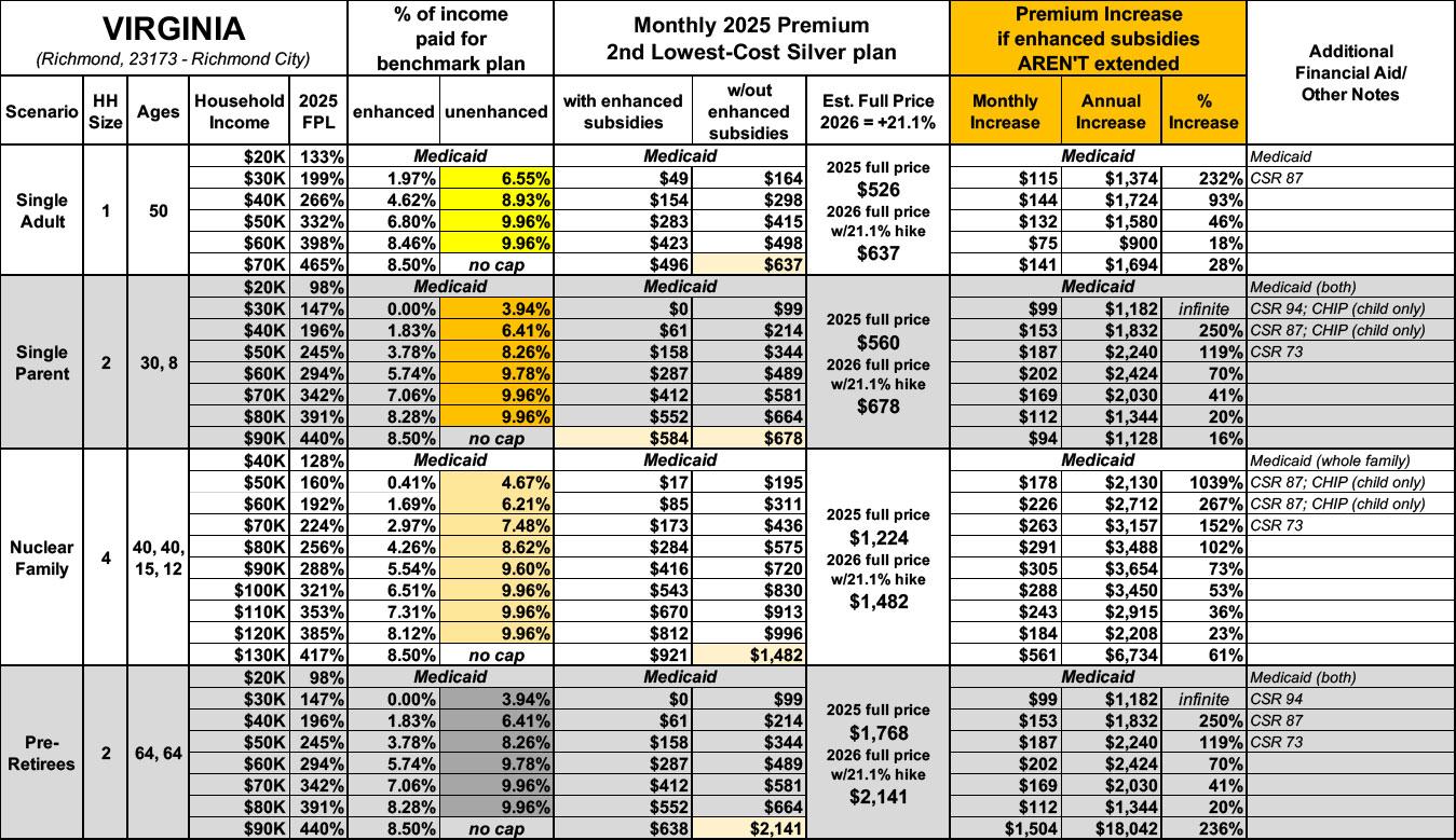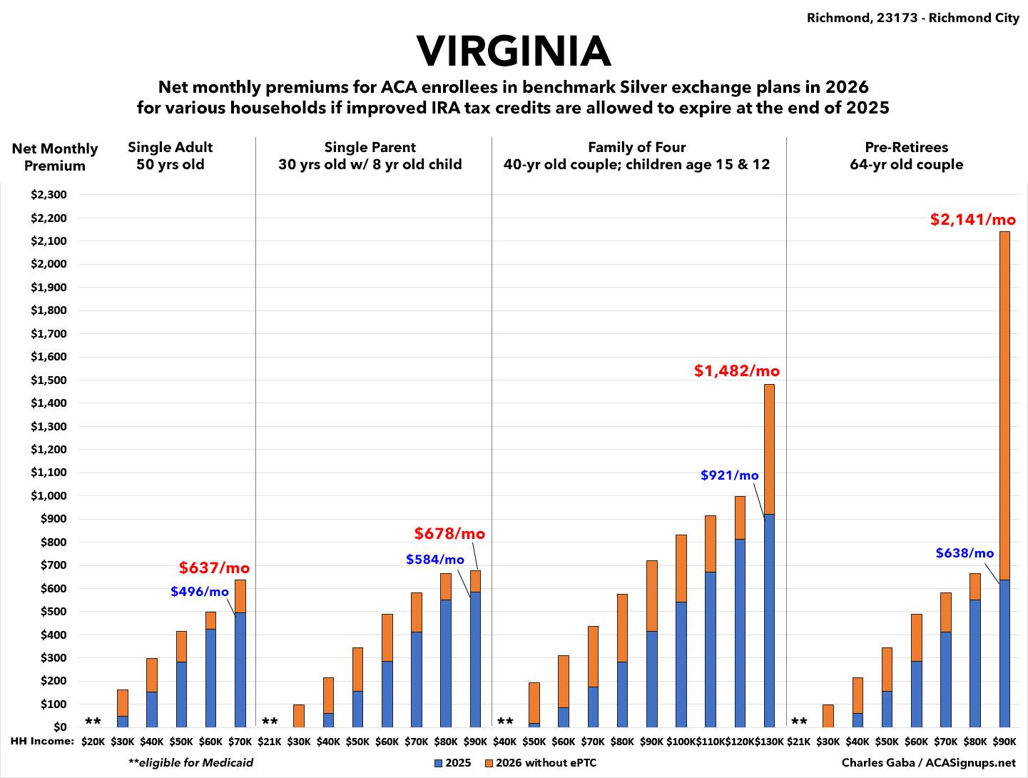 How much more will VIRGINIA residents pay if the enhanced #ACA subsidies expire? (updated)