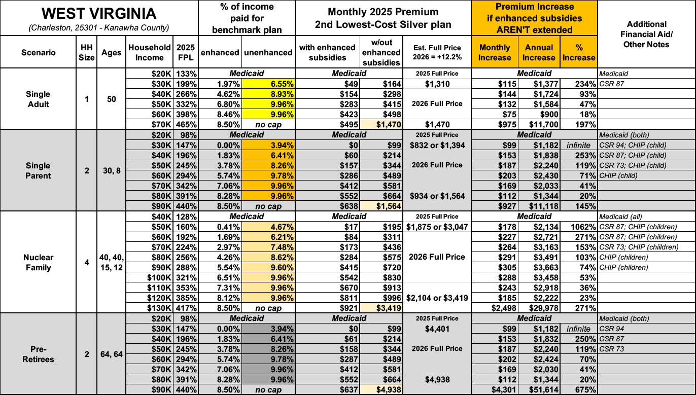 UPDATE 9/25/25: Since West Virginia will have the highest gross ACA premiums in the country next year, I decided to dig even further to find an even more extreme edge case.