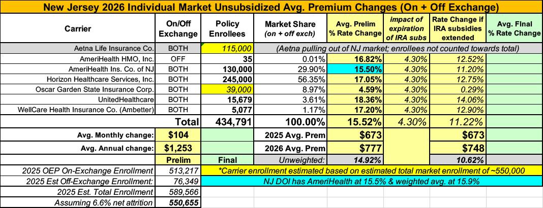 UPDATE 8/28/25: According to the New Jersey Dept. of Banking & Insurance, Amerihealth has bumped up their preliminary request by 2 points, which in turn raises the weighted average by one point to 15.9% (I actually have it down as 15.5% but whatever...)